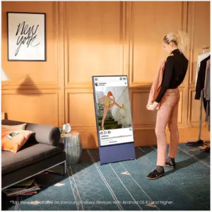 Este ecrã de TV THE SERO é o design mais vendido da Samsung em 2020! É possível projetar a tela do celular sem demora, e "virar a TV" ao mesmo tempo que gira o celular.Acontece que a tecnologia torna a vida melhor assim! O Sero pode reproduzir programas de TV horizontalmente e, em seguida, virar a tela vertical para exibir o vídeo ou conteúdo do aplicativo; conecte o telefone para virar a moldura da TV para concluir as configurações de compartilhamento do telefone.