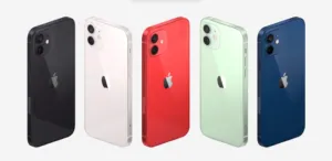 O iPhone 12 Mini e o iPhone 12 são lançados em azul marinho, verde menta, preto, branco, (PRODUTO) VERMELHO, feito de liga de alumínio .